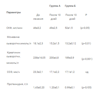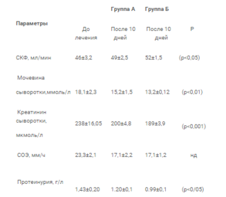 Как показали результаты исследования все больные до лечения имели клинико-лабораторные признаки нефропатии умеренной и высокой степени активности.